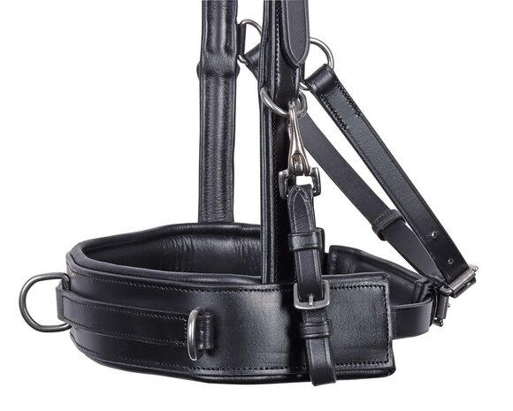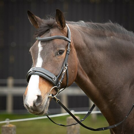 Kaptoom-hoofdstel, deze is verstelbaar aan de bakstukken. Zowel het kopstuk, frontriem, neusriem en de bakstukken zijn zacht onderlegd.