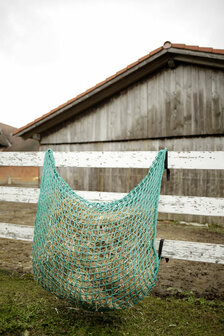 eenvoudig te bevestigen met snelsluitingen dik koord van 6 mm voor een lange levensduur voor de box, paddock of weide gemakkelijk te vullen Materiaal Polypropyleen Maaswijdte: 4,5 x 4,5 cm