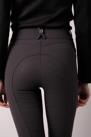 Essential rijbroek met hoge taille in een simpel ontwerp met kleine ton sur ton logo's op het rechterbeen en de linkerknie. De rijbroek is voorzien van een prachtig nieuw siliconen patroon en de rijbroek is nog steeds gemaakt in onze geweldige Yati stof. De Yati-stof verbetert de kwaliteit van je rijervaring. Het materiaal is zeer rekbaar. Dat betekent dat het zich aanpast aan uw lichaamsvorm wanneer u de rijbroek draagt. Yati heeft veel eigenschappen zoals 4-way-stretch, duurzame elasticiteit en kleur plus een premium look. De rijbroek heeft twee knopen, twee voorzakken en lycra driehoeken voor een strakke pasvorm.