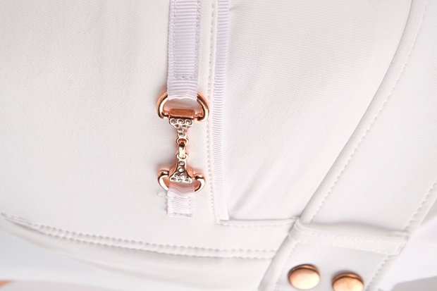 Nieuwe Molly rijbroek in een moderne en vernieuwde uitvoering. In deze nieuwe bijgewerkte versie hebben de rijbroeken een rosegold-logo op de linkervoorzak, een prachtige rosegold signature bit en rosegold-knopen. Molly rijbroeken hebben een hoge taille en hebben V-cuts in de tailleband om je de perfecte pasvorm en geweldige ondersteuning te geven. Molly rijbroeken zijn gemaakt in onze geweldige Yati stof. De Yati-stof verbetert de kwaliteit van uw rijervaring met een hoge flexibiliteit dankzij de 360 graden stofelasticiteit. Rijbroeken gemaakt in Yati-stof zijn ook vuilafstotend, waterafstotend, vochtafvoerend en de rijbroek heeft durabale elasticiteit en kleur plus een premium uitstraling. Molly rijbroeken hebben twee voorzakken die perfect zijn voor waardevolle spullen.