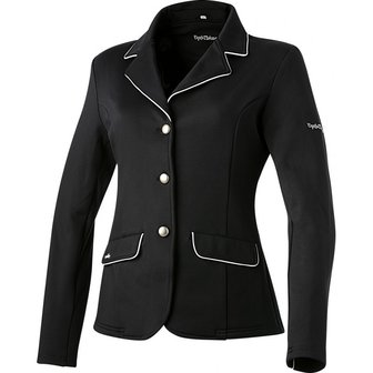 Van ademende, waterafstotende en winddichte polyester softshell met gekamde polar fleece-achtige binnenkant voor gebruik in het tussen- en winterseizoen. Nauwsluitend anatomisch model, naden op de ellebogen voor totale bewegingsvrijheid zelfs tijdens het springen, getailleerd aan de voor- en achterkant en dubbbe splitten. Contrasterende bies langs de kraag, flappen van de zakken en uiteinden van de mouwen. Knoopsluiting, 2 zakken met een flap en 2 splitten aan de achterkant. Samenstelling: 94% polyester en 6% elastaan Machine wasbaar op 30°C